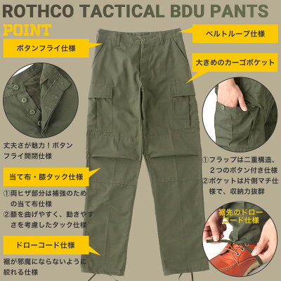 ロスコ カーゴパンツ ボタンフライ BDU XS-2XL ROTHCO USAモデル メンズ レディース / SS LL 2L XXL 3L パンツ 大きいサイズ ブランド 定番アイテム 迷彩 作業服 ダンス アウトドア ソックスイン [RN-A]