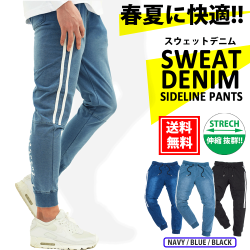 サイドライン切り替え カットデニム ジョガーパンツ セットアップ 可 ジョガーパンツ デニム 春服 【1万円以上お買い上げで Ron Herman ロンハーマン ミニタオル プレゼント!】伸縮 スウェット オシャレ 部屋着 ルームウェア M,L,XL SSS SSS