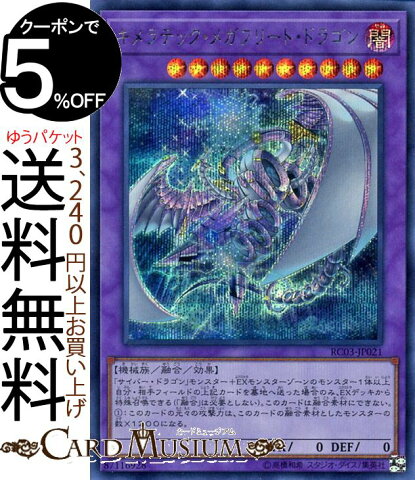 遊戯王 「RARITY COLLECTION - PREMIUM GOLD EDITION -(レアリティ コレクション −プレミアム ゴールド エディション−)」(RC03)収録 ■カード名:キメラテック・メガフリート・ドラゴン 【融合・効果モンスター】シークレットレア ■星10/闇属性/機械族/攻:0/守:0/ ■「サイバー・ドラゴン」モンスター+EXモンスターゾーンのモンスター1体以上 自分・相手フィールドの上記カードを墓地へ送った場合のみ、EXデッキから特殊召喚できる(「融合」は必要としない)。