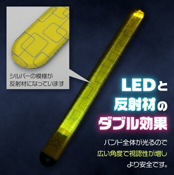 LED発光とリフレクター(反射材)により、バンド全体が光るので視認性が大幅にアップ!運転手に認識されやすくなります。