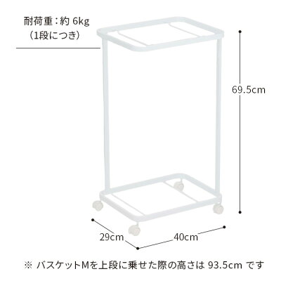 【p10】 ランドリーバスケット 3点セット tower スリム ワゴン キャスター付き おしゃれ 2段 洗濯かご ランドリーラック バスケットセット 洗濯収納 洗濯カゴ 脱衣かご 脱衣カゴ 山崎実業ランドリーワゴン + バスケット セット タワー (洗濯かご 洗面所 サニタリー) DETAIL 商品名 ランドリーワゴン + バスケット セット タワー カラー ホワイト ブラック サイズ バスケット M:約 横幅41cm × 奥行き31cm × 高さ26.5cm バスケット L:約 横幅41cm × 奥行き30cm × 高さ39cm ワゴン:約 横幅40cm × 奥行き29cm × 高さ69.5cm バスケットを乗せた時の高さ:約 93.5cm 内容量 バスケット M:約 23L バスケット L:約 33L 耐荷重 バスケット M:約 3kg バスケット L:約 4kg ワゴン 1段につき:約 6kg 材質 スチール(ユニクロメッキ+粉体塗装) 備考 お客様組み立て品 付属品 六角レンチ、スパナ スチールの素材感を活かし、無駄な装飾を省いたシンプルなデザインの「ランドリーワゴン + バスケット セット タワー」。
