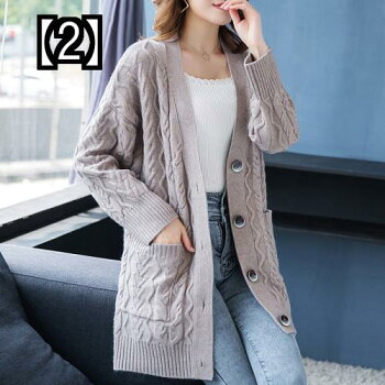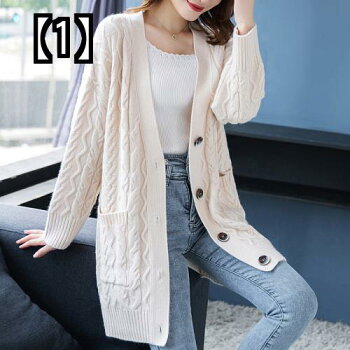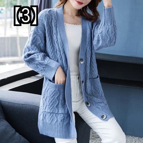 カーディガン レディース 秋 オフィス ゆったり ジャケット ボレロ ミドル丈 セーター 長袖ニット 厚手のアウター シンプル ポケット カジュアル