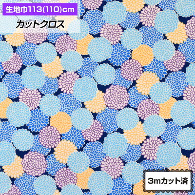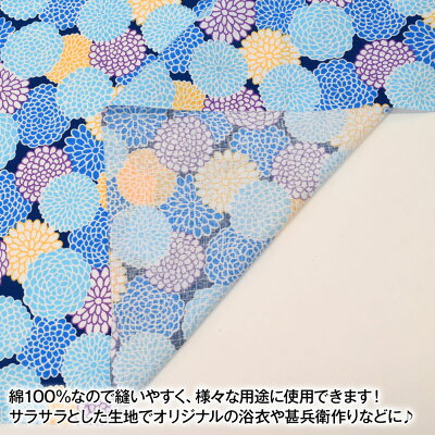 生地 和柄 花柄(113cm巾×3mカット済) 布 麻風 浴衣 ゆかた 甚兵衛 和風 サザンクロスプリント よさこい 総踊り 小物 エプロン パッチワーク 手作り ハンドメイド 裁縫 サラサラ 涼しい 日本製 綿100% ブルー FA25M18【楽ギフ_包装】 [M便 2/3]