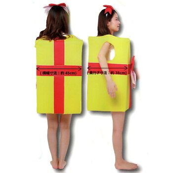 顔出し着ぐるみ プレゼントコスチューム 【商品番号】No.22149 【商品説明】プレゼントのラッピングのコスチューム!クリスマス、お誕生日、サプライズイベント、ハロウィンに! 【サイズ】男女兼用 フリーサイズ全長:約72cm 正面巾:約45cm 奥行き:約38cm 【素材】ウレタンボンディング(ポリエステル100%) 【備考】画像と色合いが多少異なる場合があります。