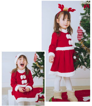 クリスマス服 3点セット 衣装 帽子 カチューシャ クリスマス 衣装 キッズ服 ガールズ ワンピース 可愛い 変装 クリスマス 服 キッズ セット コスプレ 仮装 子供 パーティー イペント用品 コスチューム 女の子 サンタ風 長袖 子供服