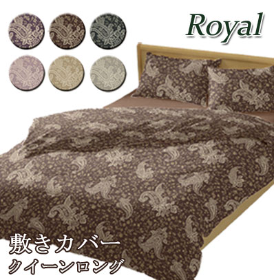 敷き布団カバー クイーンロング 165×215cm ロイヤル 綿100% コットン100% 日本製 ペイズリー タッセル付き 敷きカバー 日本製 デザインカバー おしゃれ 上品 高級 エレガント 花 タッセル ヨーロッパ